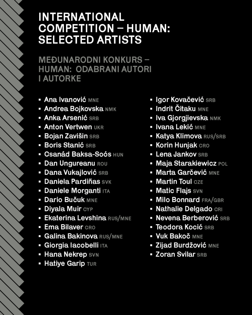 Izložba će biti svečano otvorena u saradnji sa JU Muzeji i galerije Nikšić, u Dvorcu kralja Nikole u Nikšiću, u subotu 21. marta u 19 časova. Na ovoj izložbi predstaviće se 37 autora iz 17 zemalja svijeta koji su odgovorili na konkursni zadatak pod nazivom „ČOVJEK“. Tema izložbe upućuje na savremene izazove sa kojima se čovječanstvo suočava, uključujući ubrzani razvoj vještačke inteligencije, koji otvara pitanja o samoj prirodi i identitetu čovjeka.
